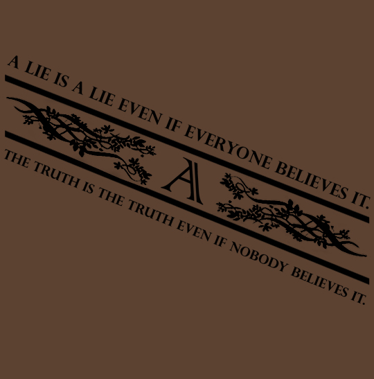 Reads: "A lie is a lie even if everyone believes it. The truth is the truth even if nobody believes it."