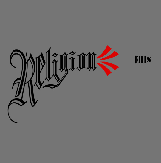 From its chamber, religion has loosed a deadly barrage that is unparalleled throughout history—leaving a wake of suffering that stretches for millennia. Shirt reads, "Religion kills." Soft ringspun cotton in a fashion-fit cut. sizing chart.